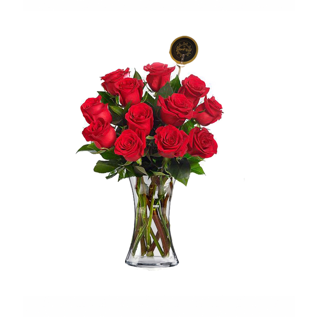 20 red roses, Glass vase
